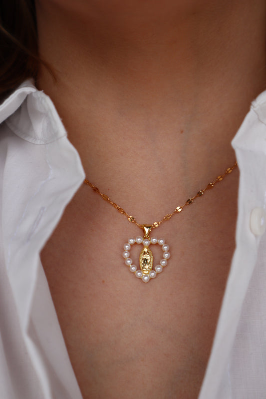 Colar religioso com madrepérolas em formato de coração