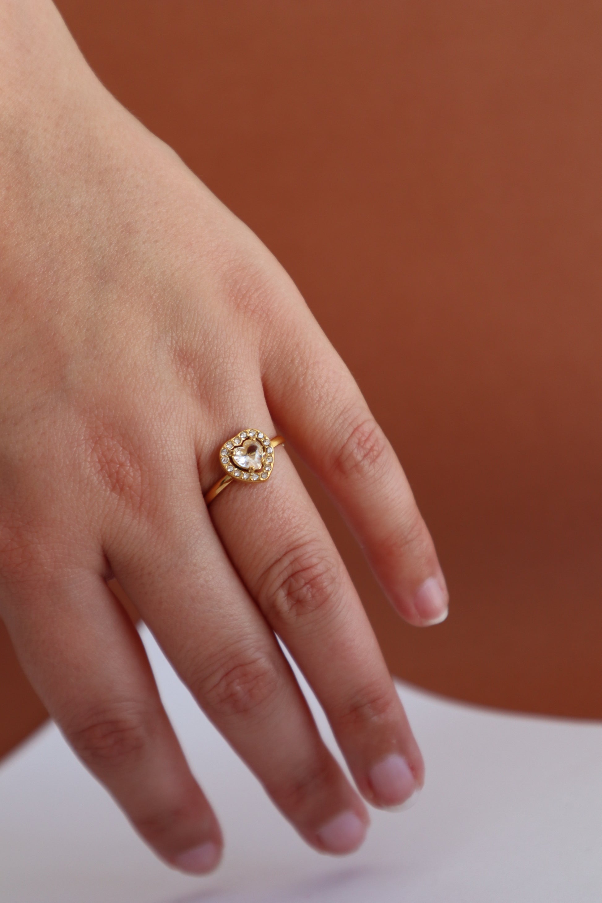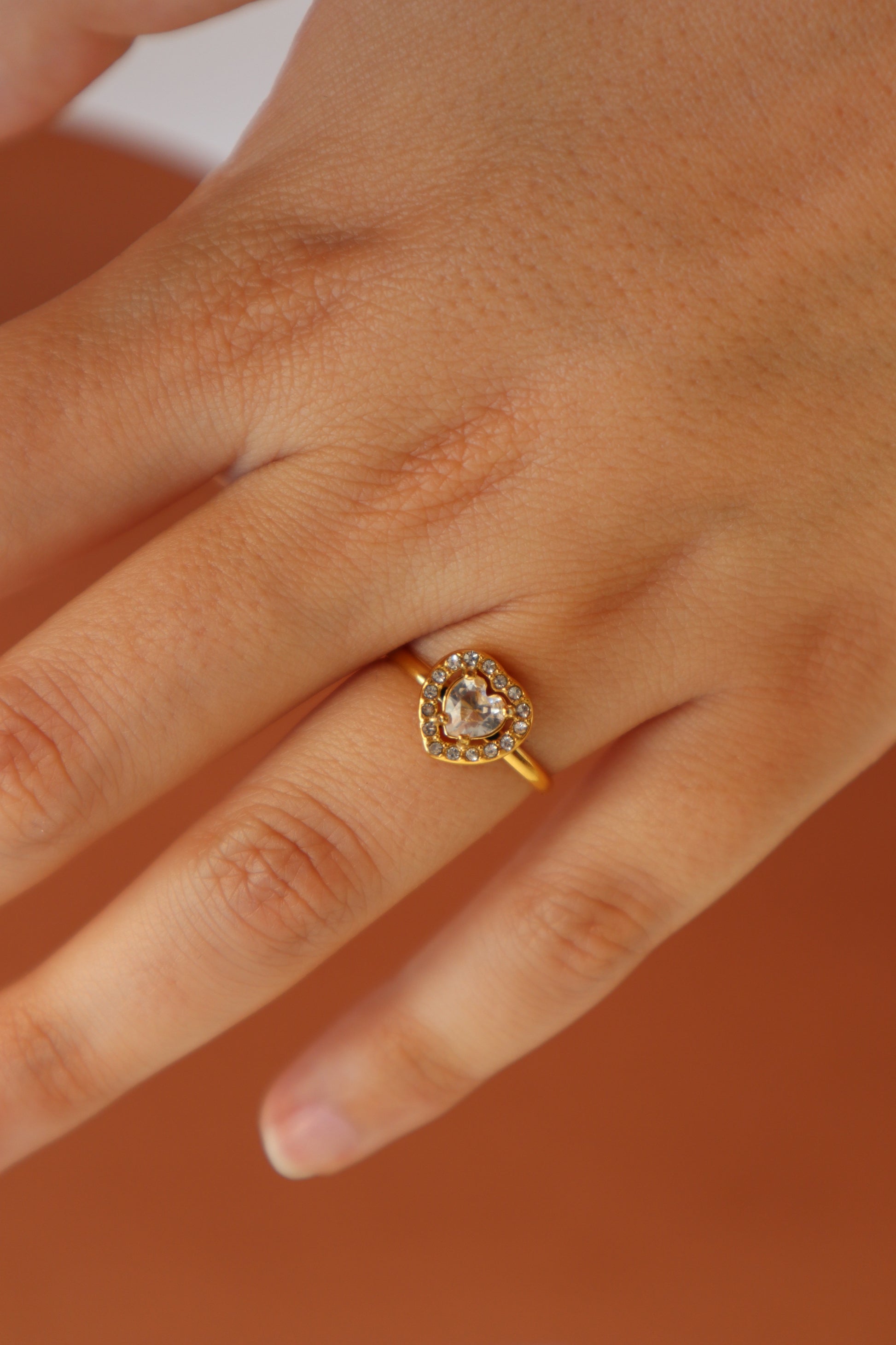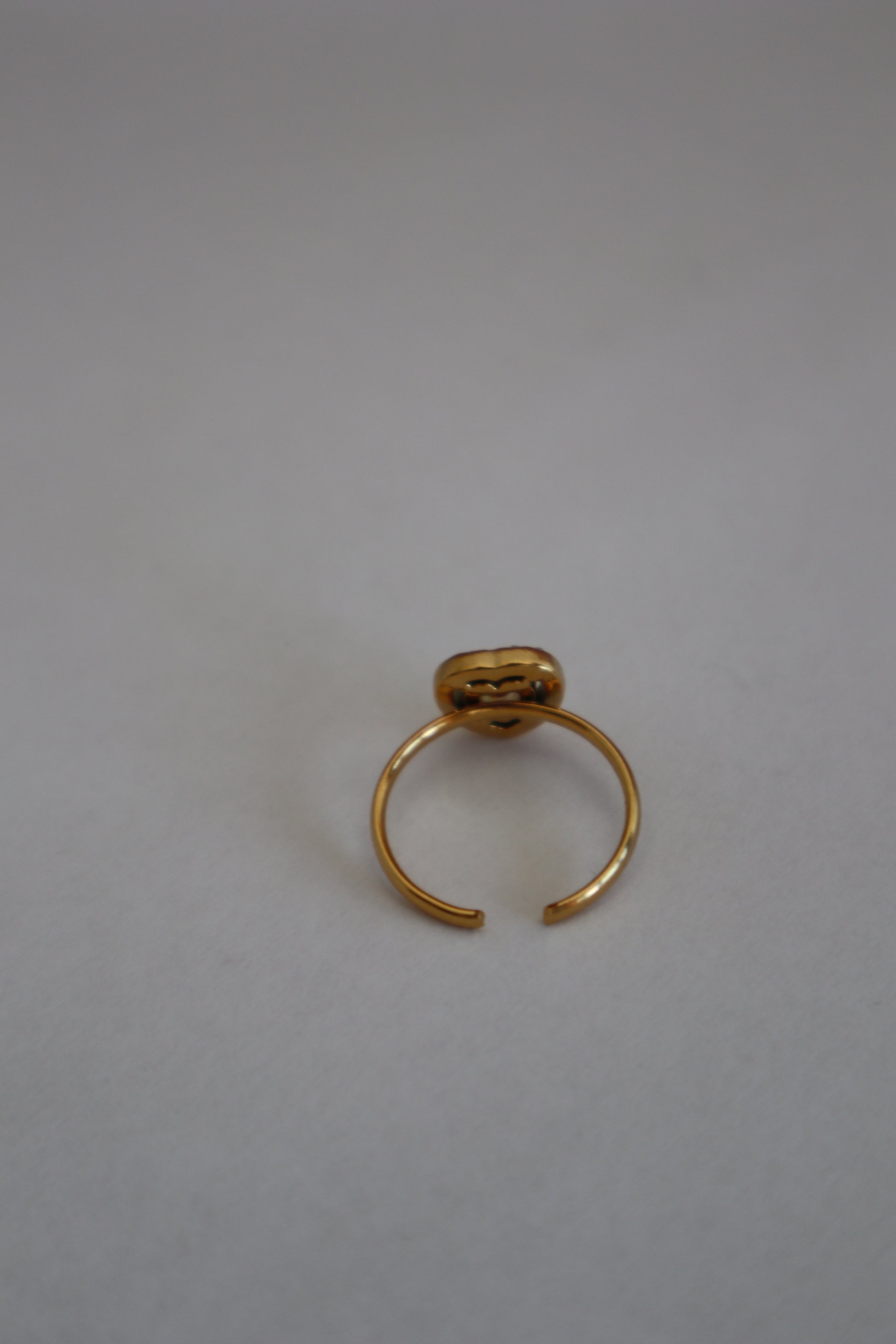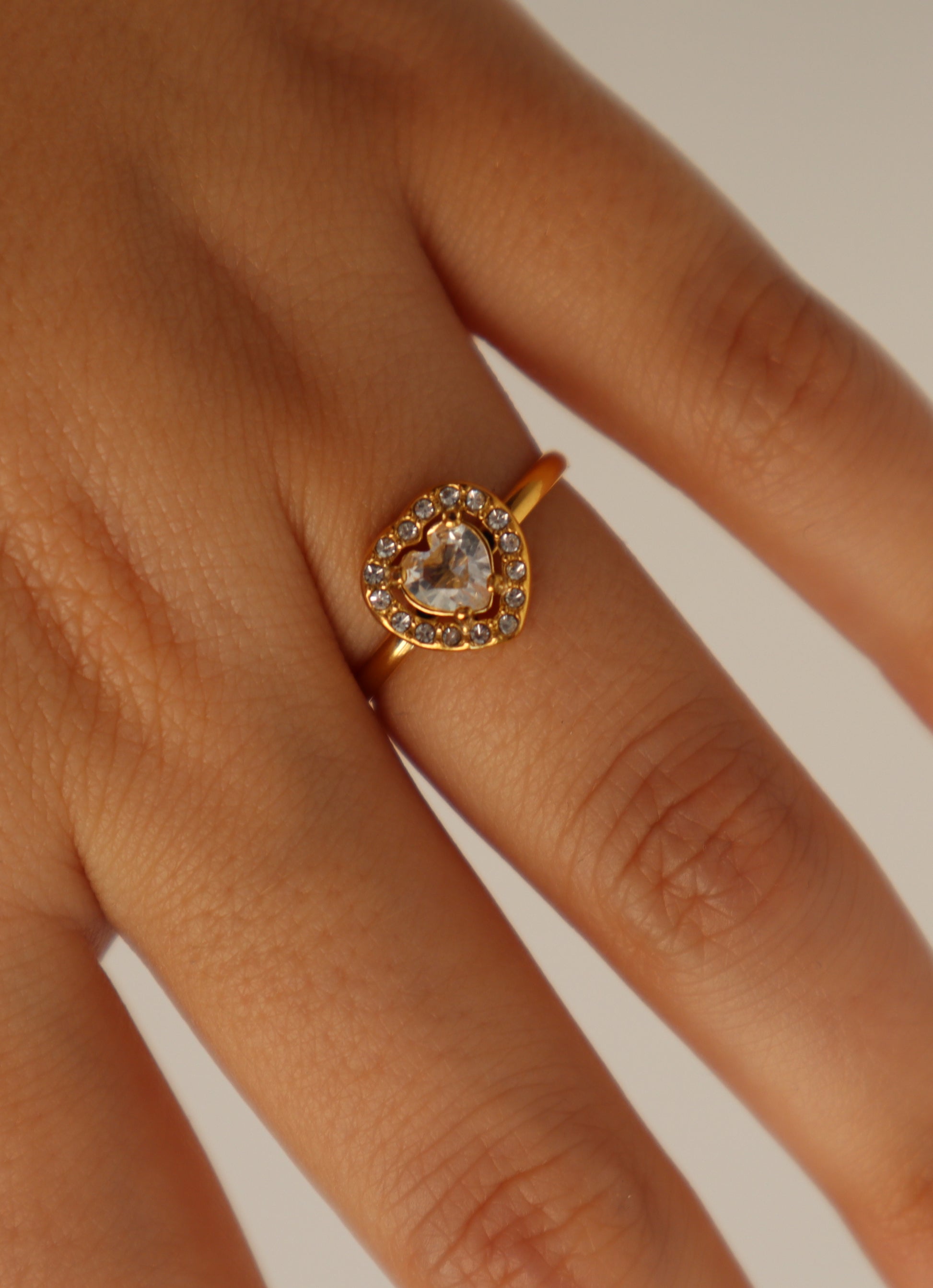 Anel ajustável de aço inoxidável com banho de ouro de 18K e zircónias.
