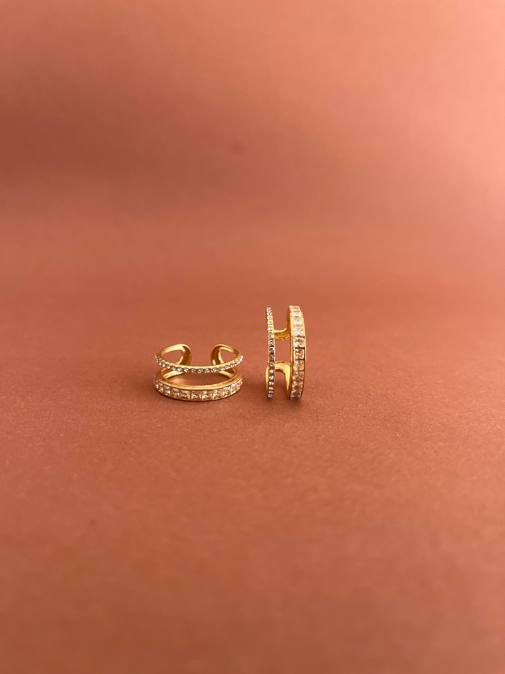 Anel ajustável de aço inoxidável com banho de ouro de 18K e zircónias.