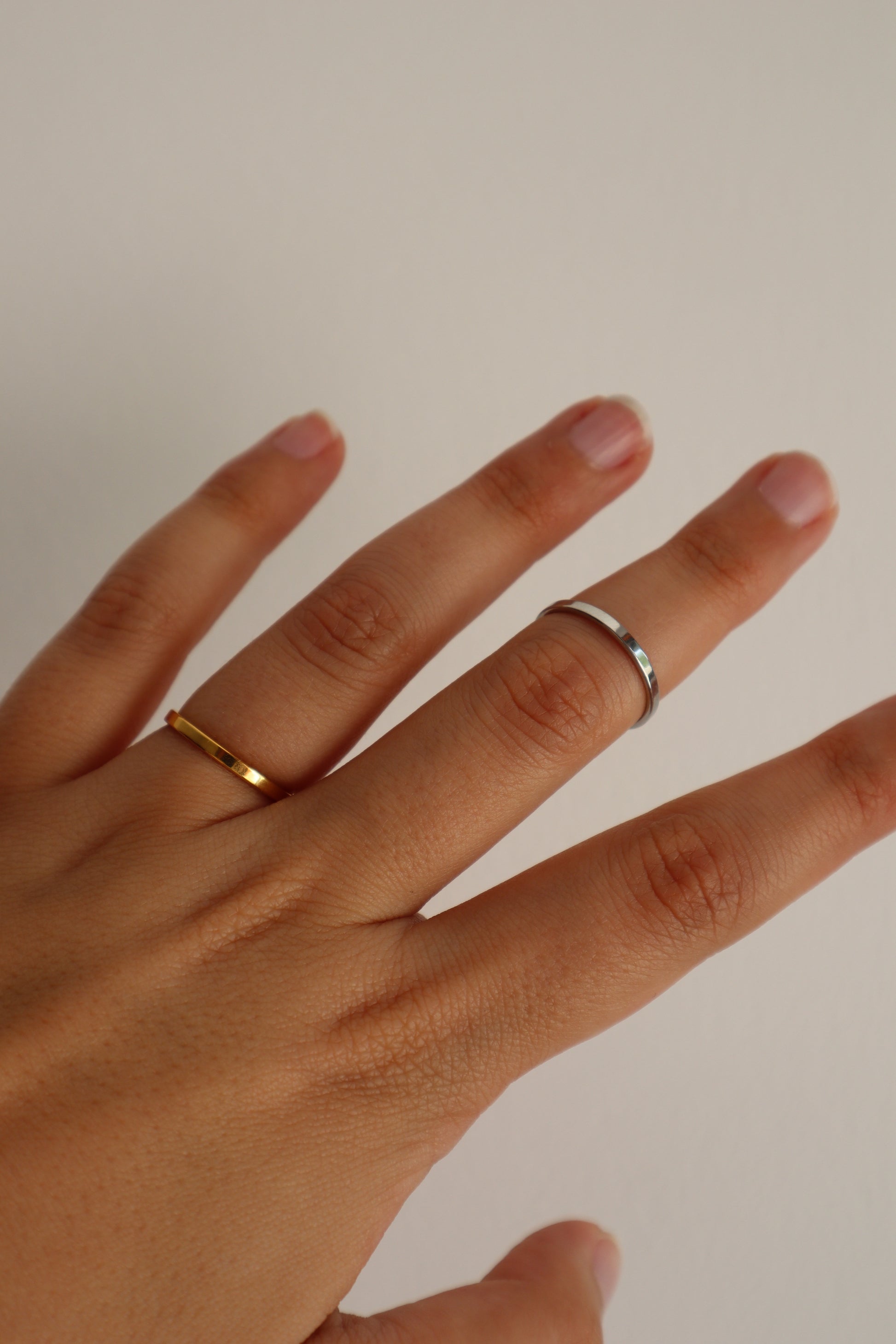 Anel ajustável de aço inoxidável com banho de ouro de 18K.