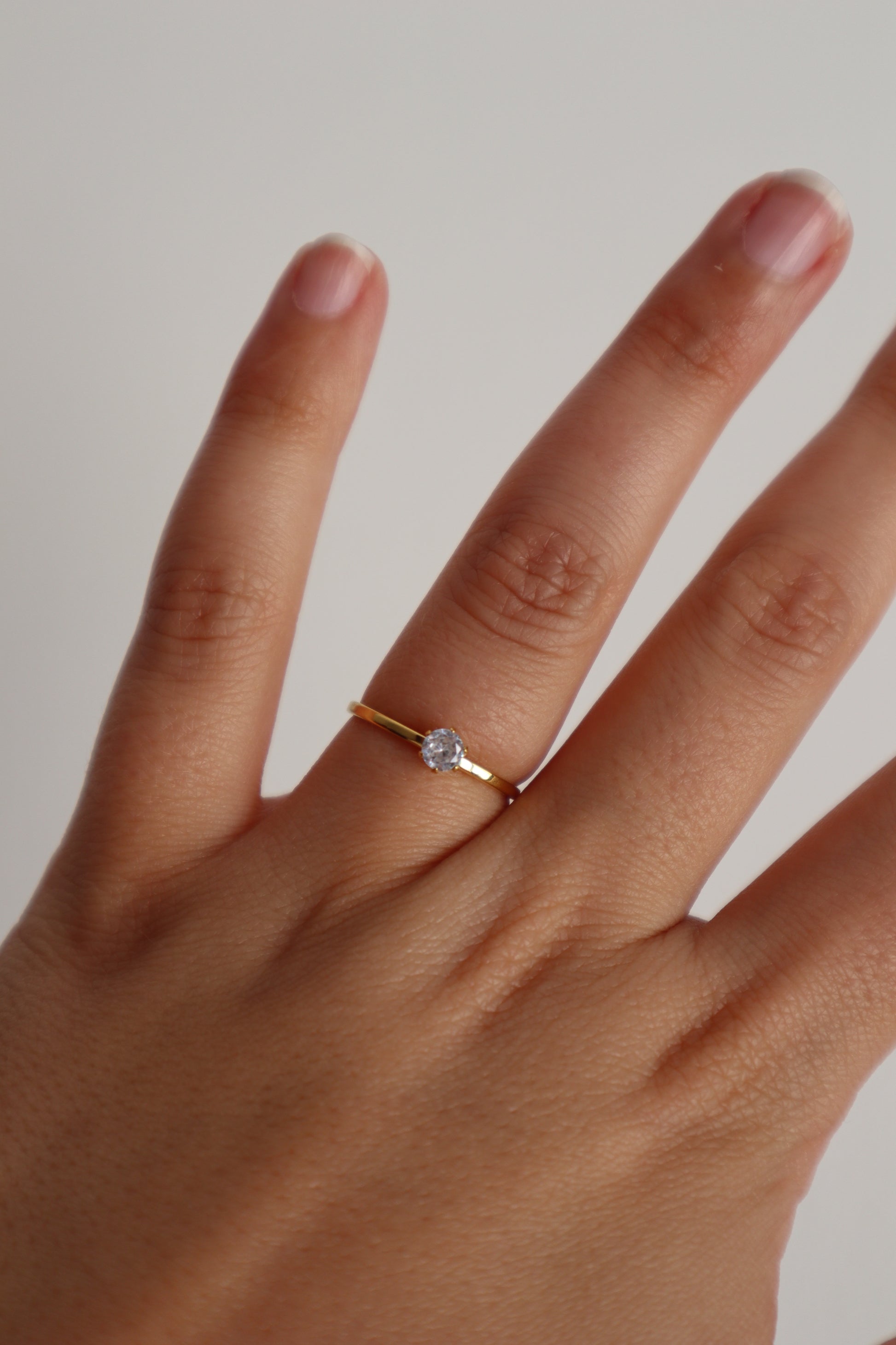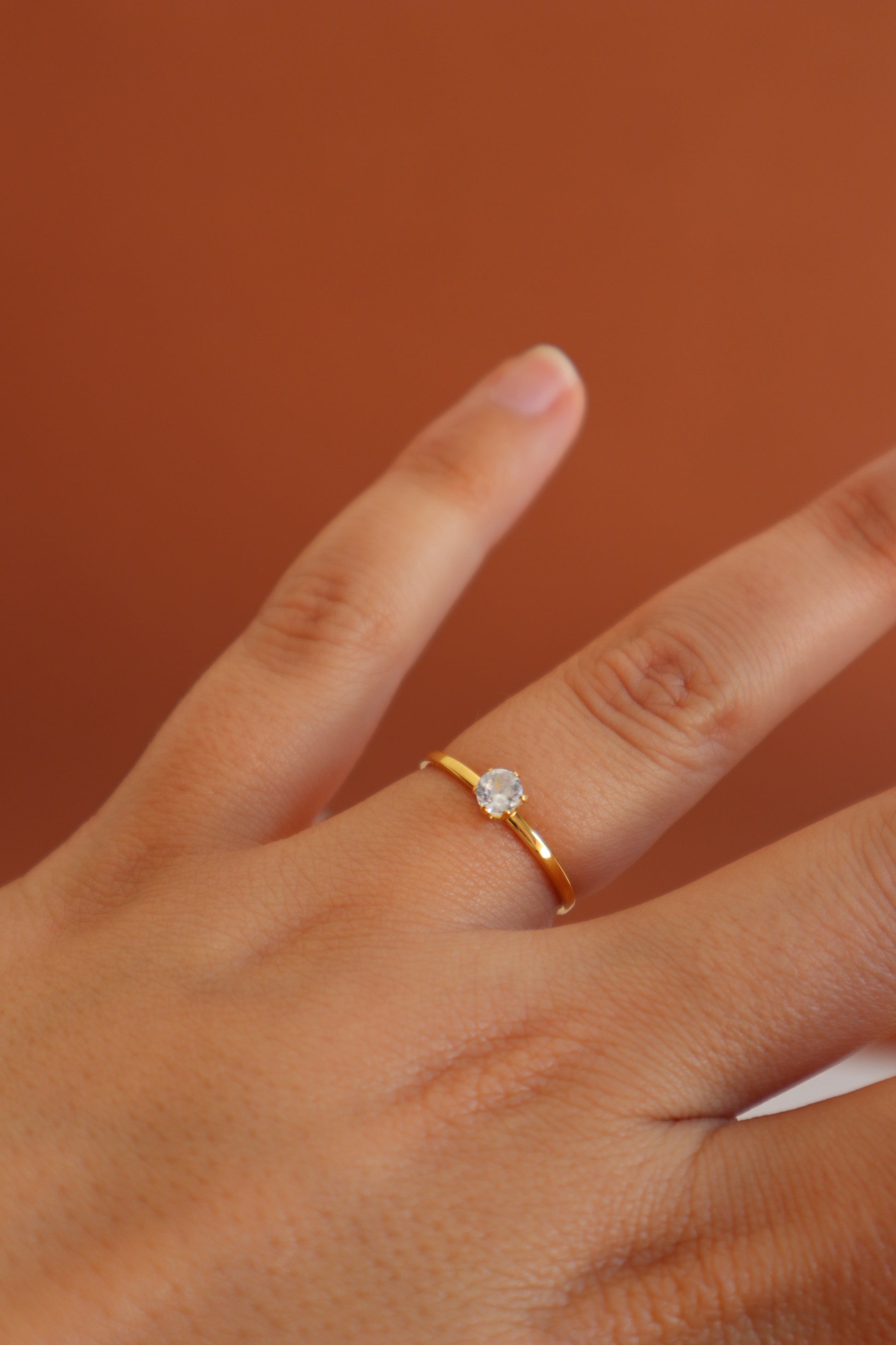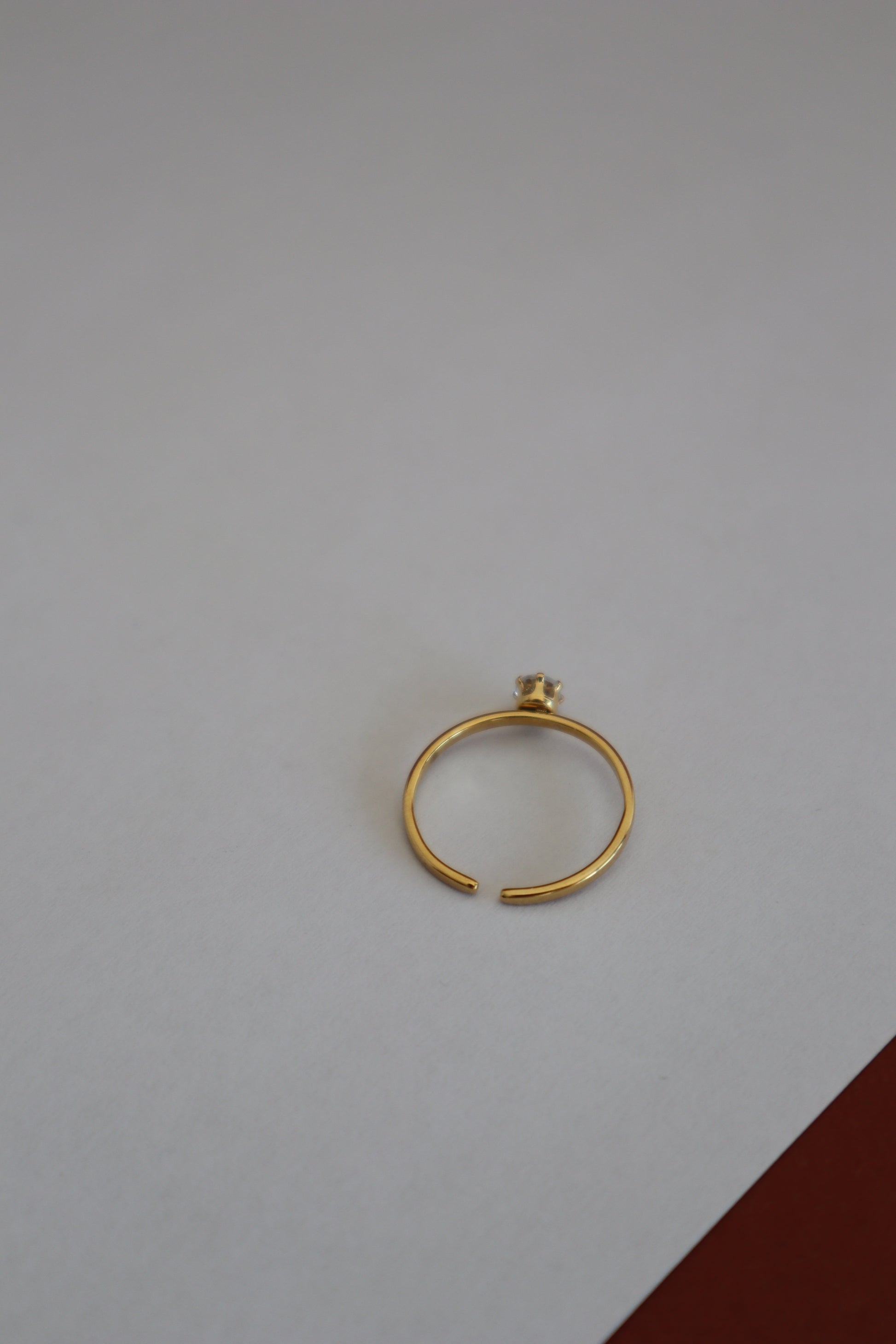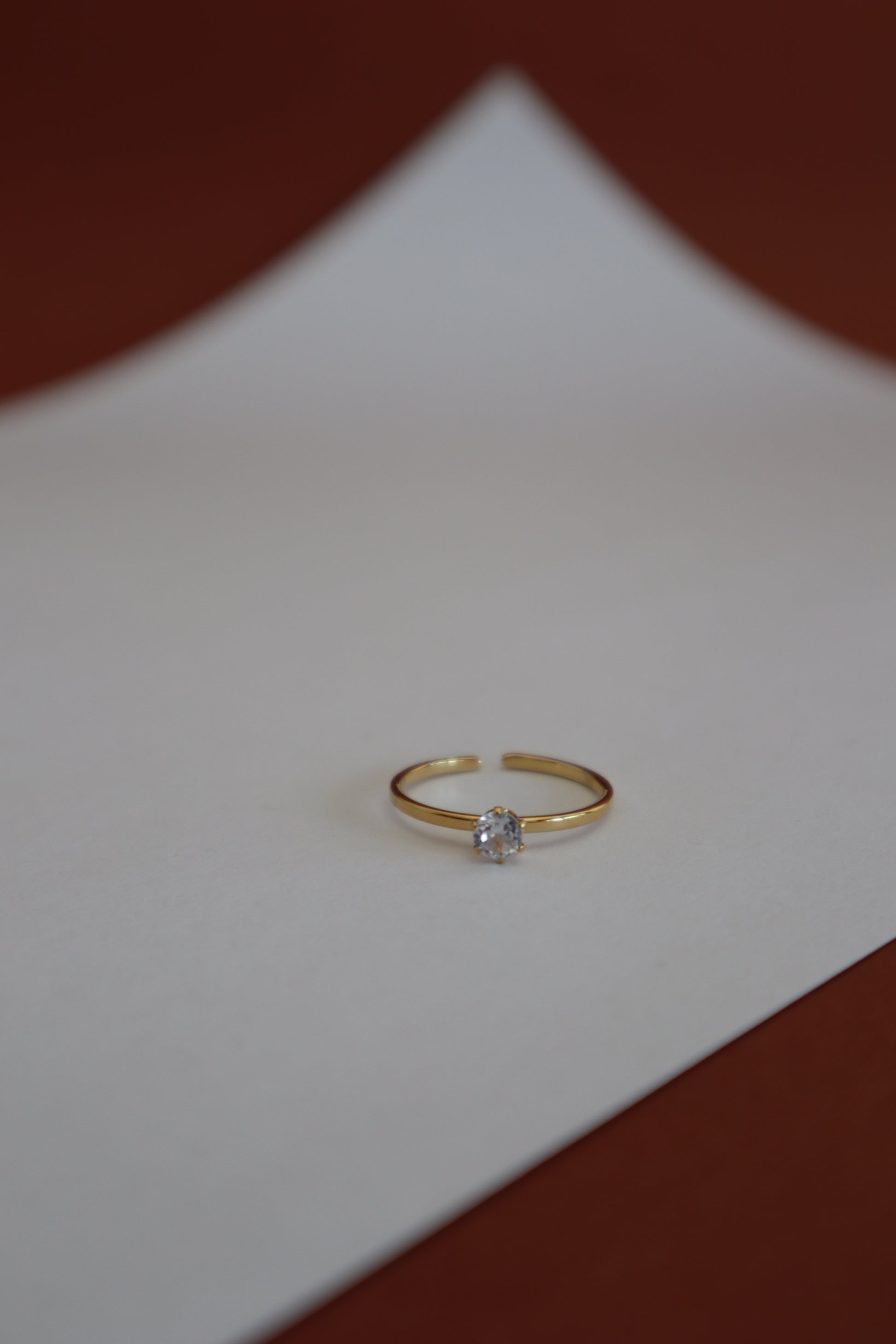 Anel ajustável de aço inoxidável com banho de ouro de 18K e zircónia.