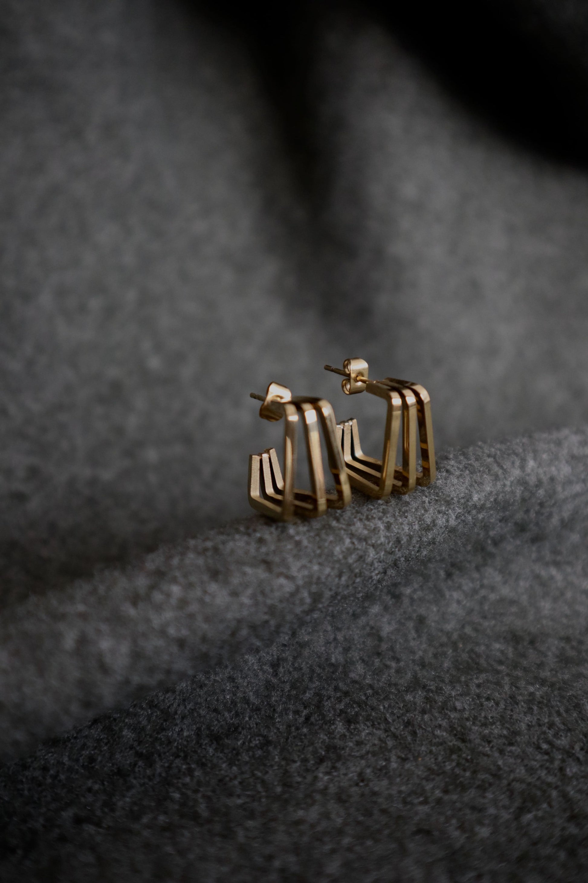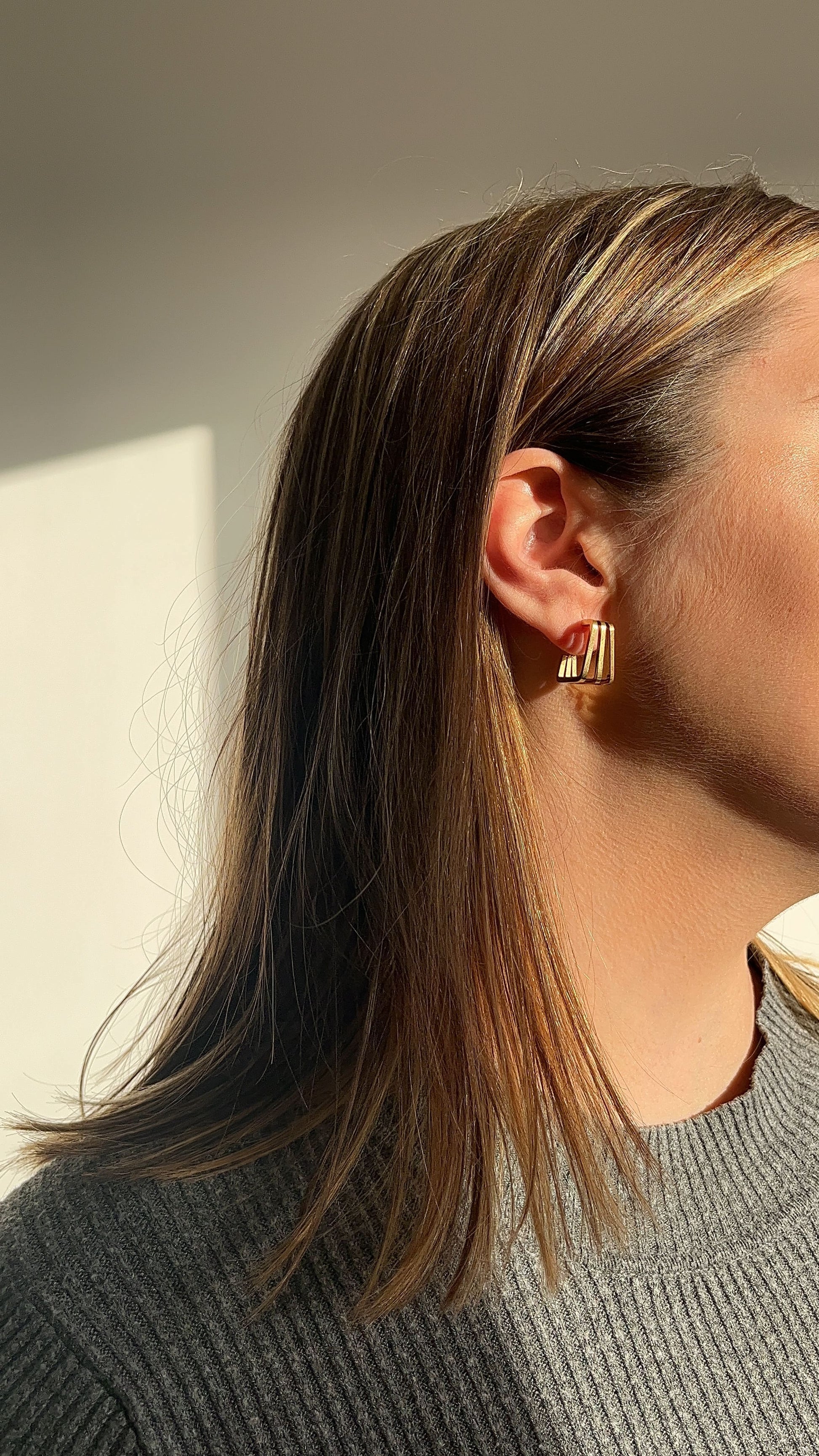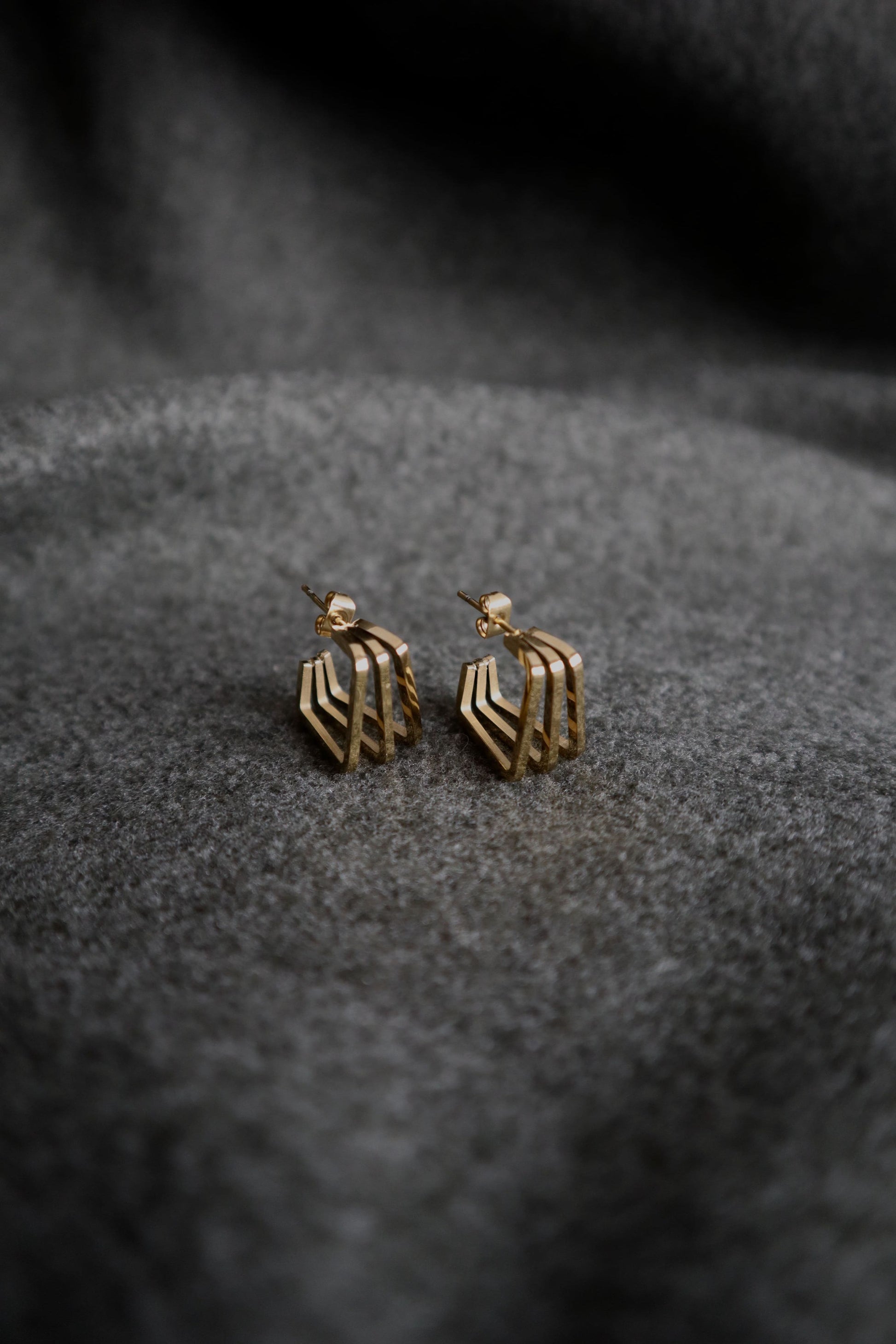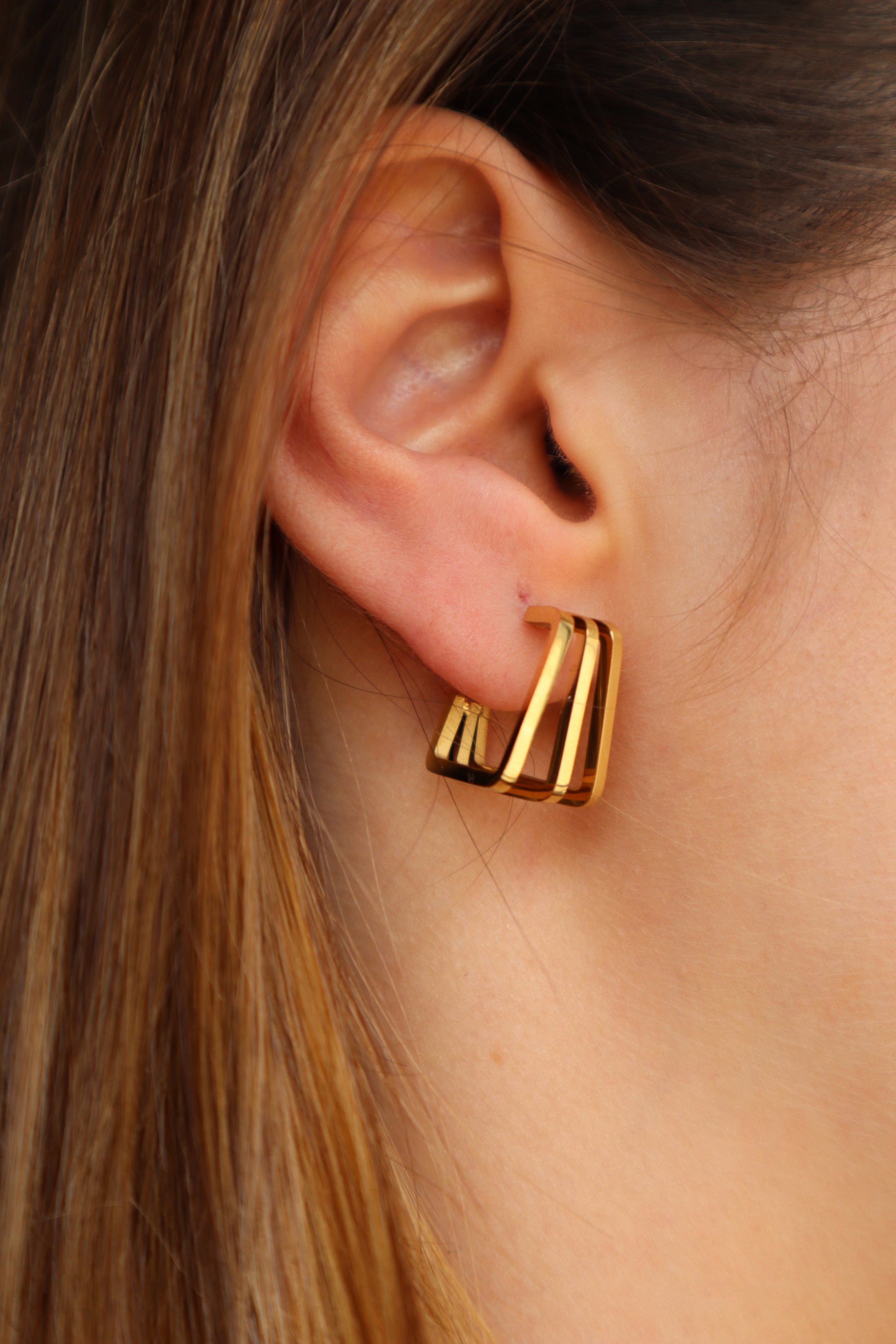 Brincos de aço inoxidável com banho de ouro de 18K.