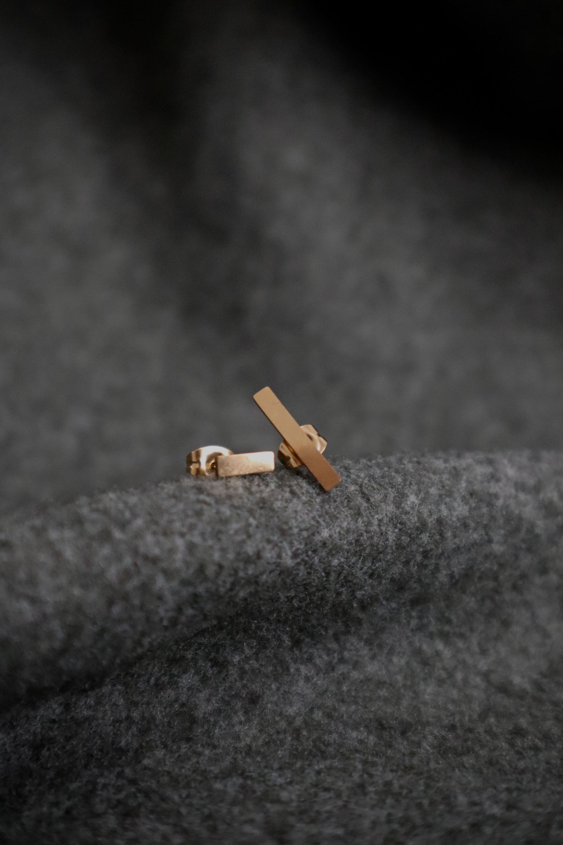 Brincos de aço inoxidável com banho de ouro de 18K.