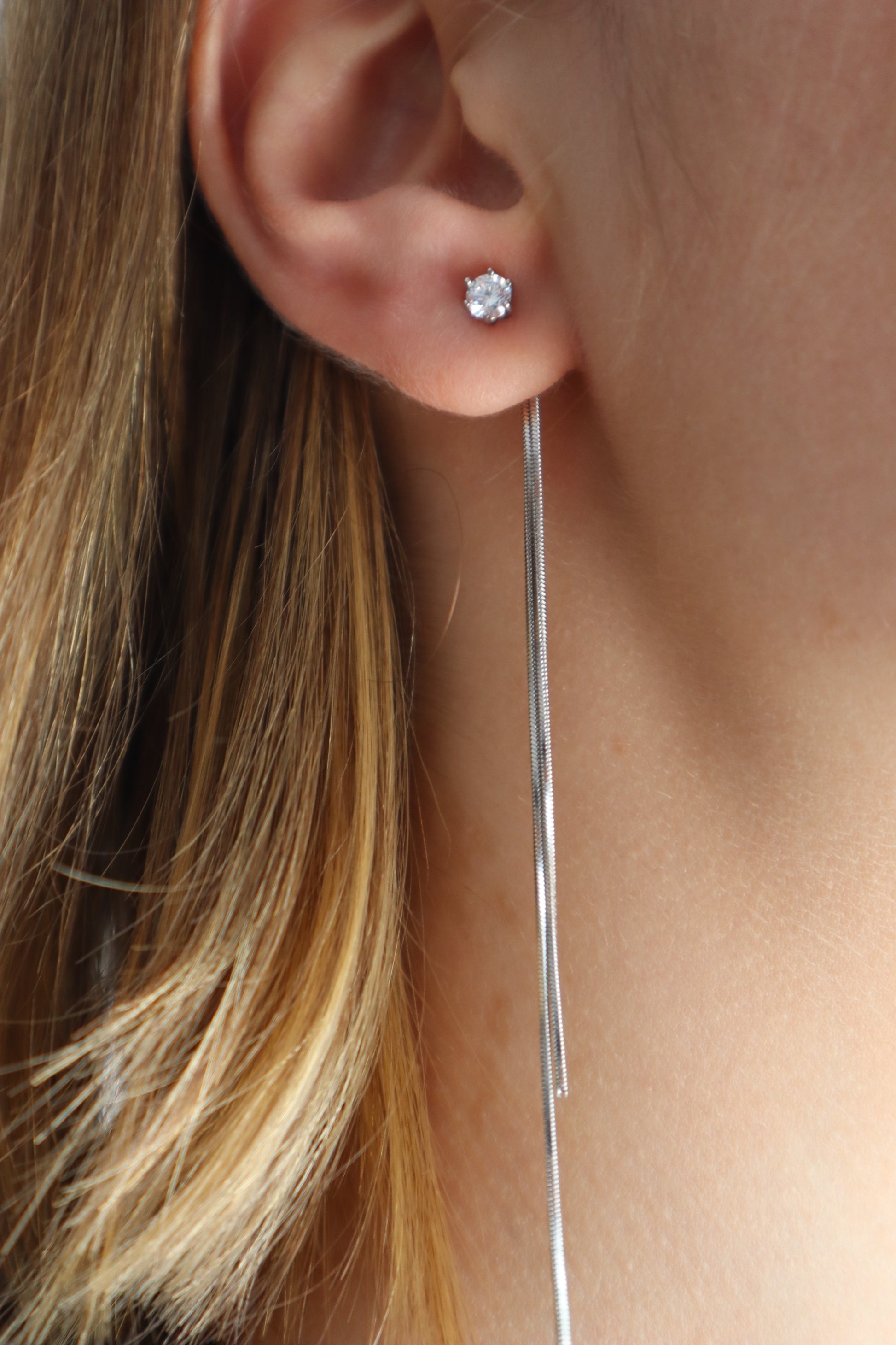 Brincos de aço inoxidável com zircónia e fio brilhante.