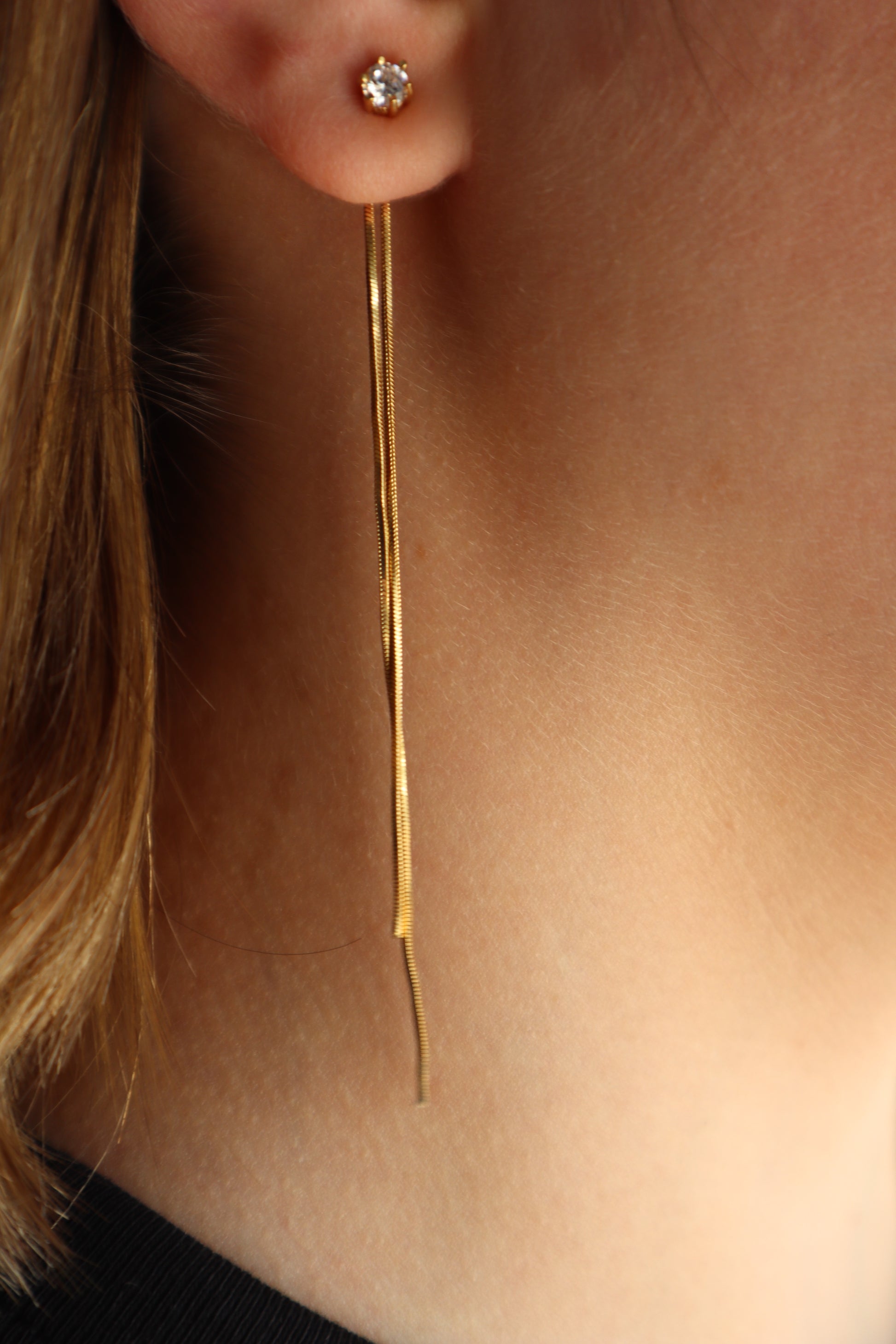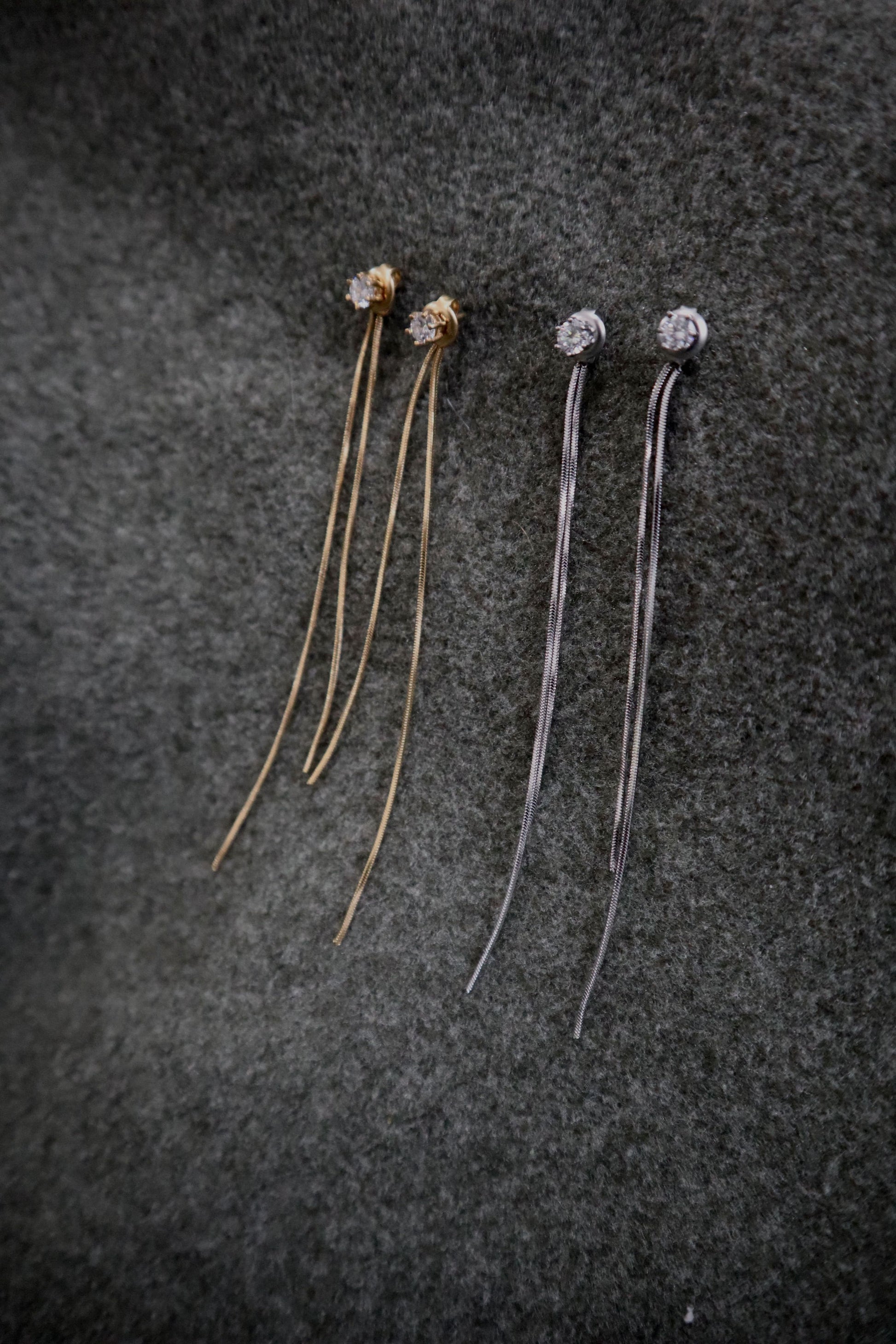 Brincos com brilhante e fio