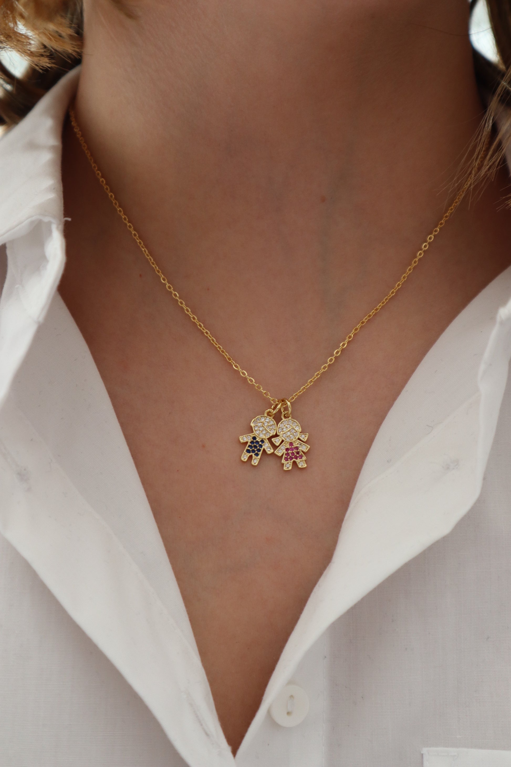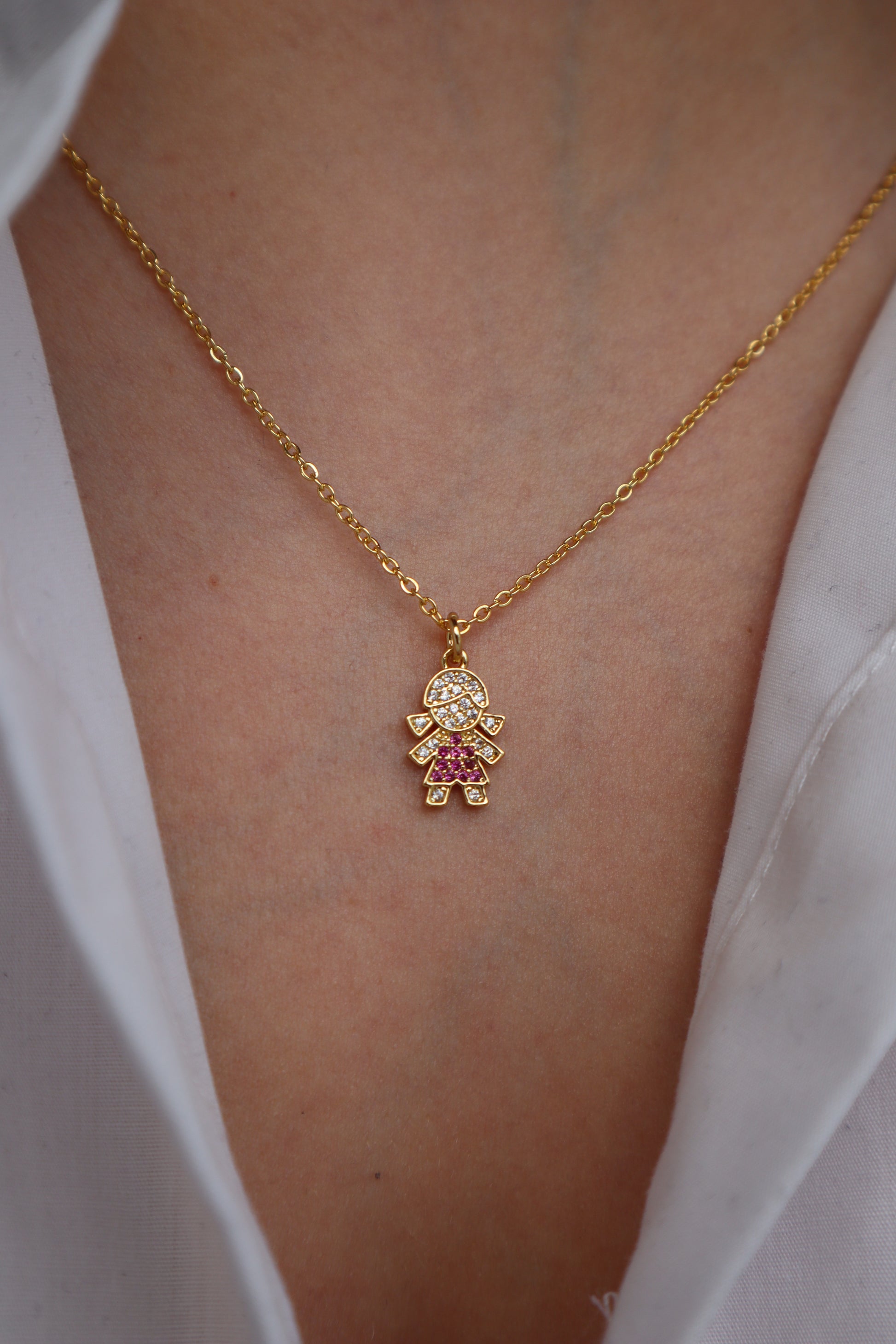 Colar de aço inoxidável com banho de ouro de 18K e zircónias.