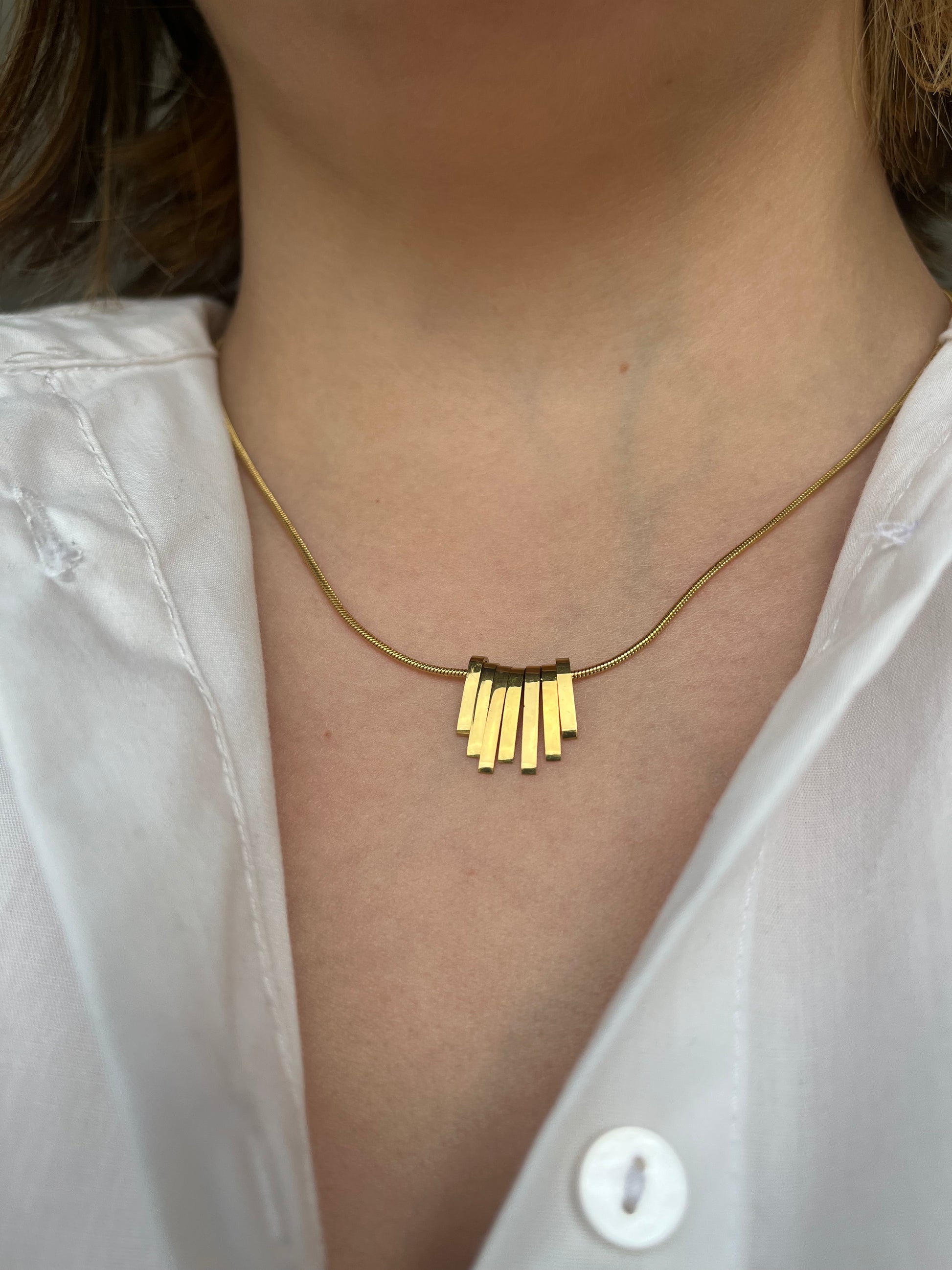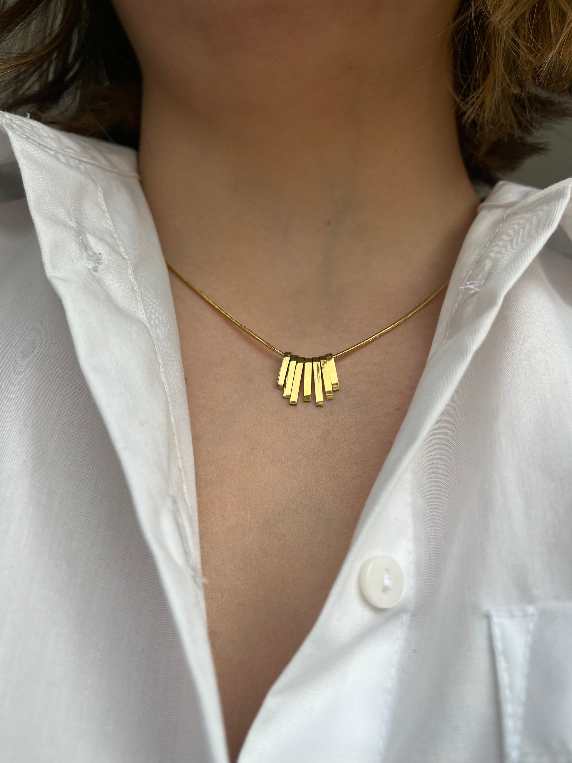 Tamanho do fio é ~38cm de comprimento + 5cm extensível. O pendente mede ~1,5cm.