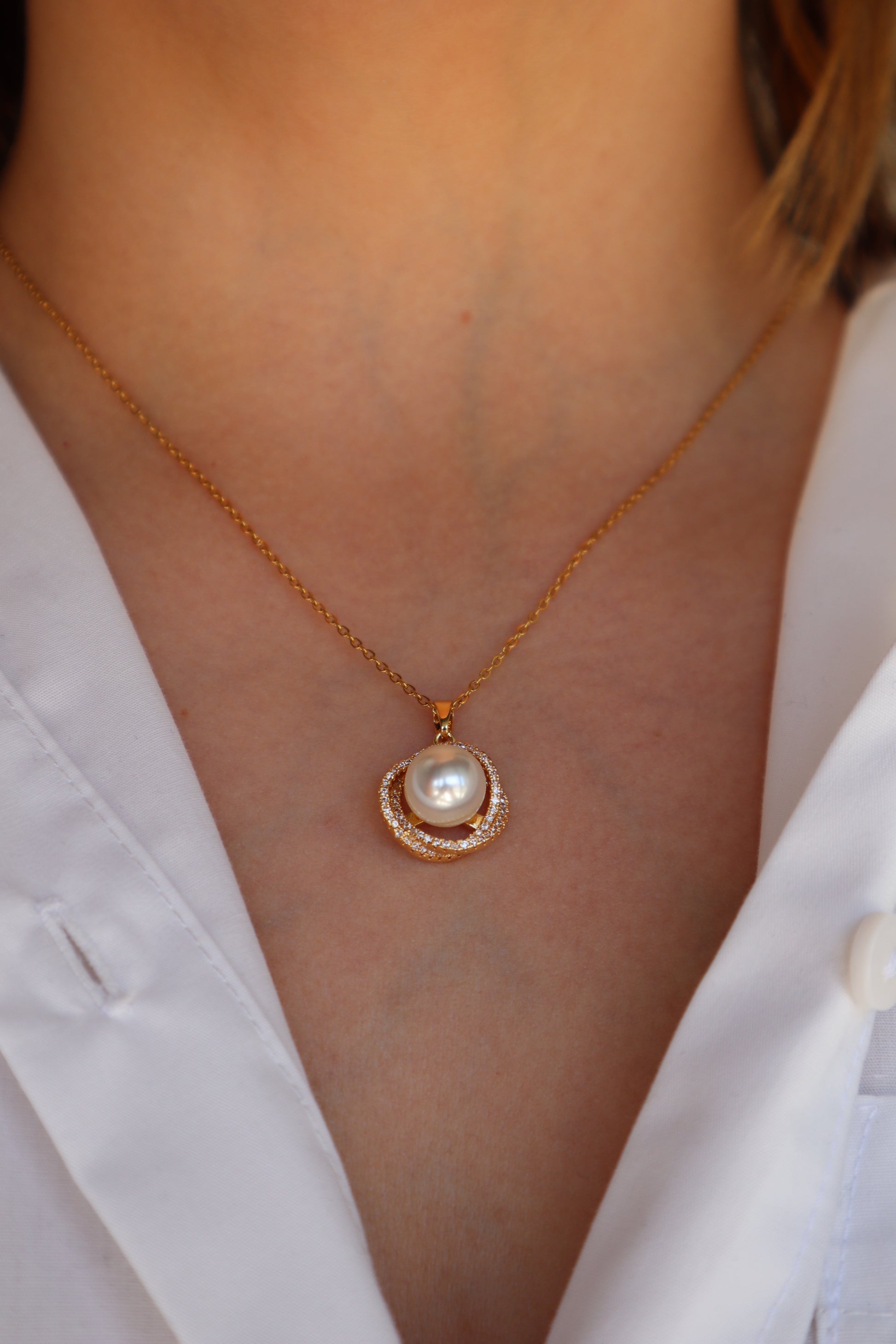 Colar com pérola e brilhantes