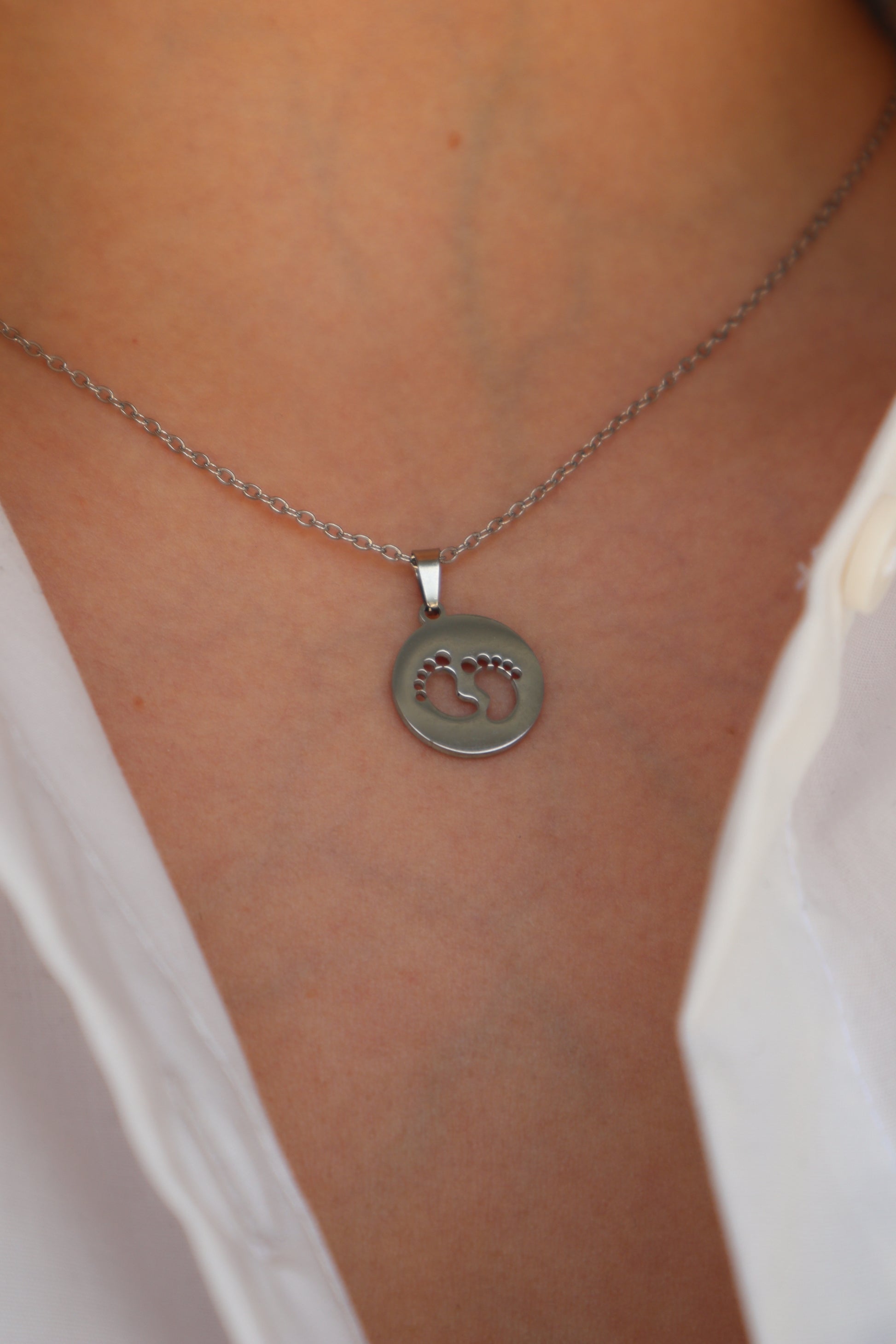 Tamanho do fio é ~44cm de comprimento + 5cm extensível. O pendente mede ~1,5cm de diâmetro.