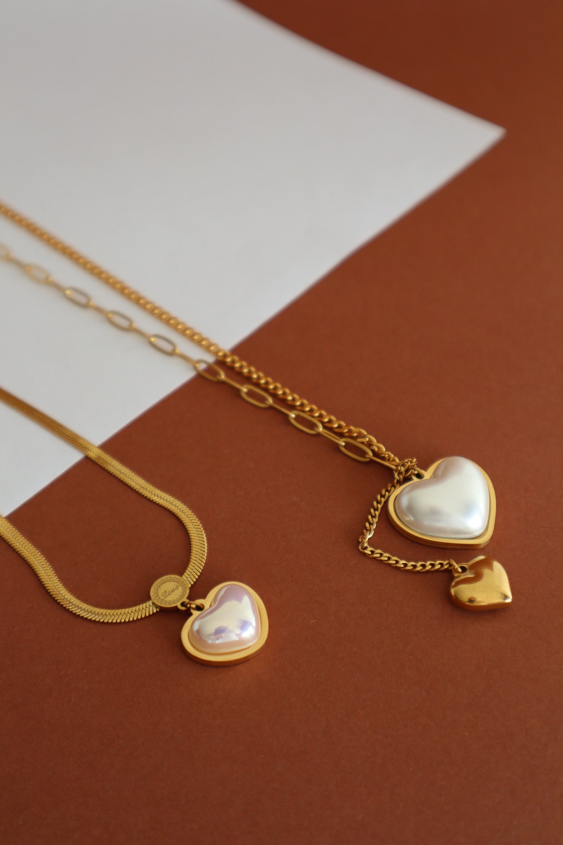 Colar de aço inoxidável com banho de ouro de 18K com pendente em madrepérola.