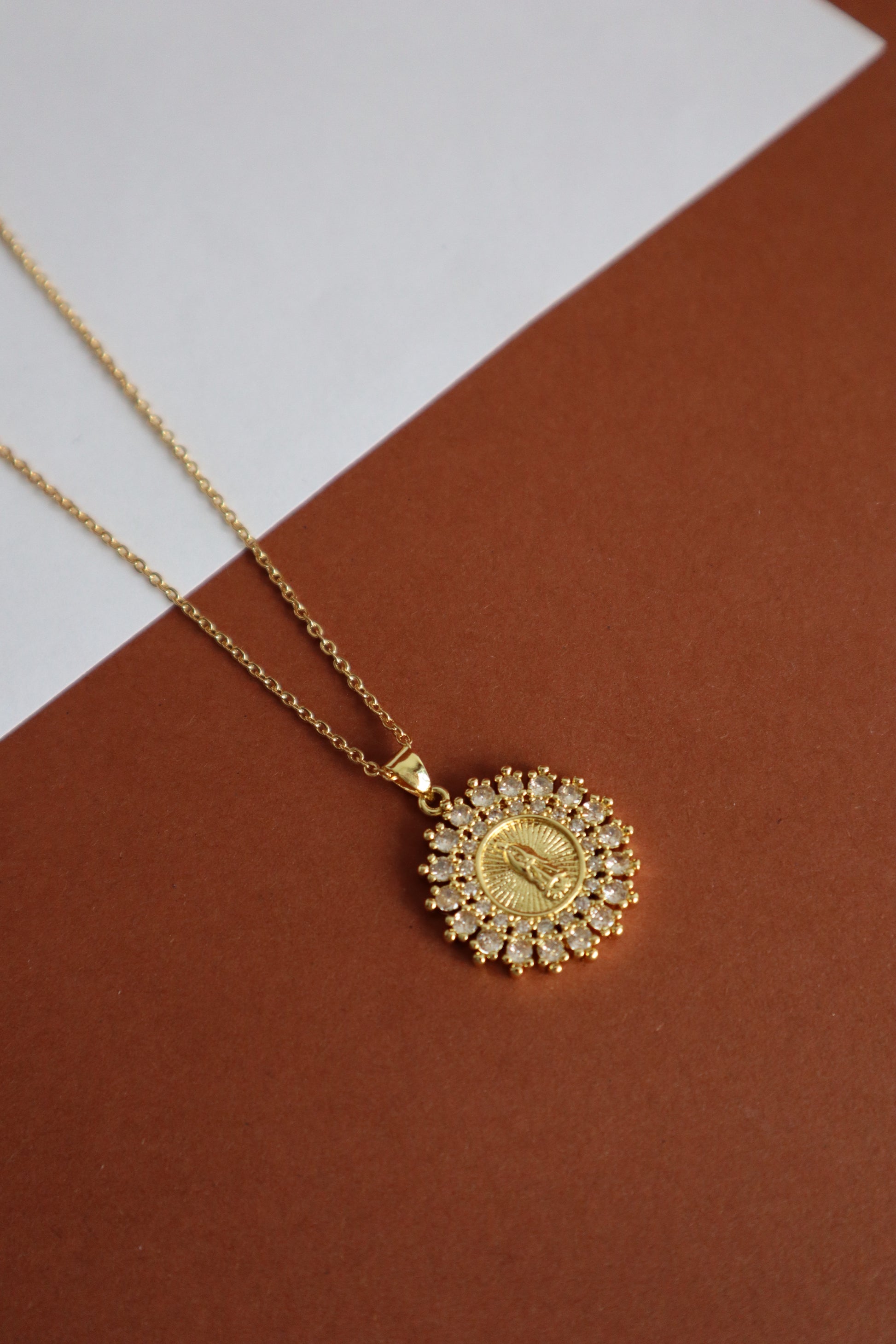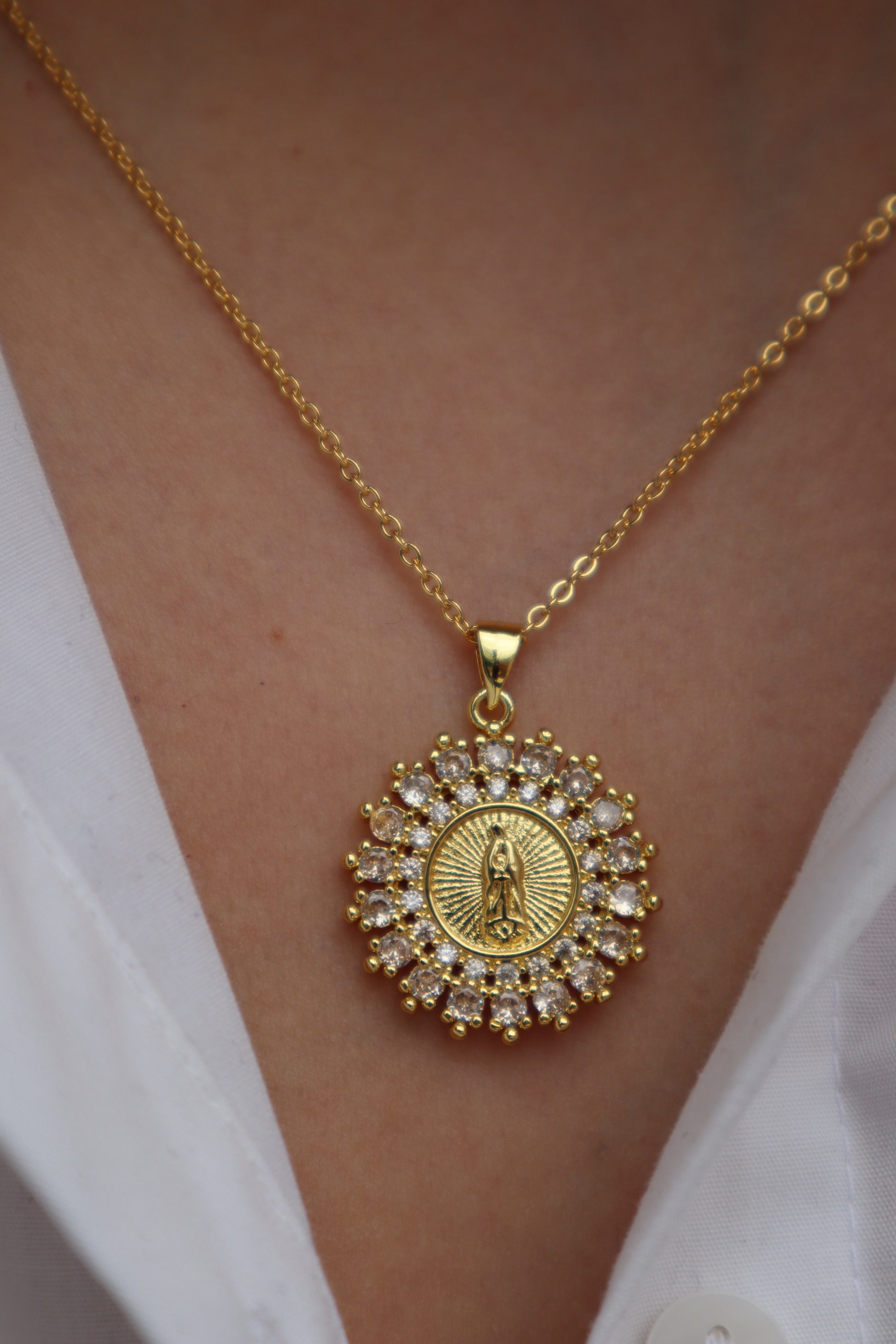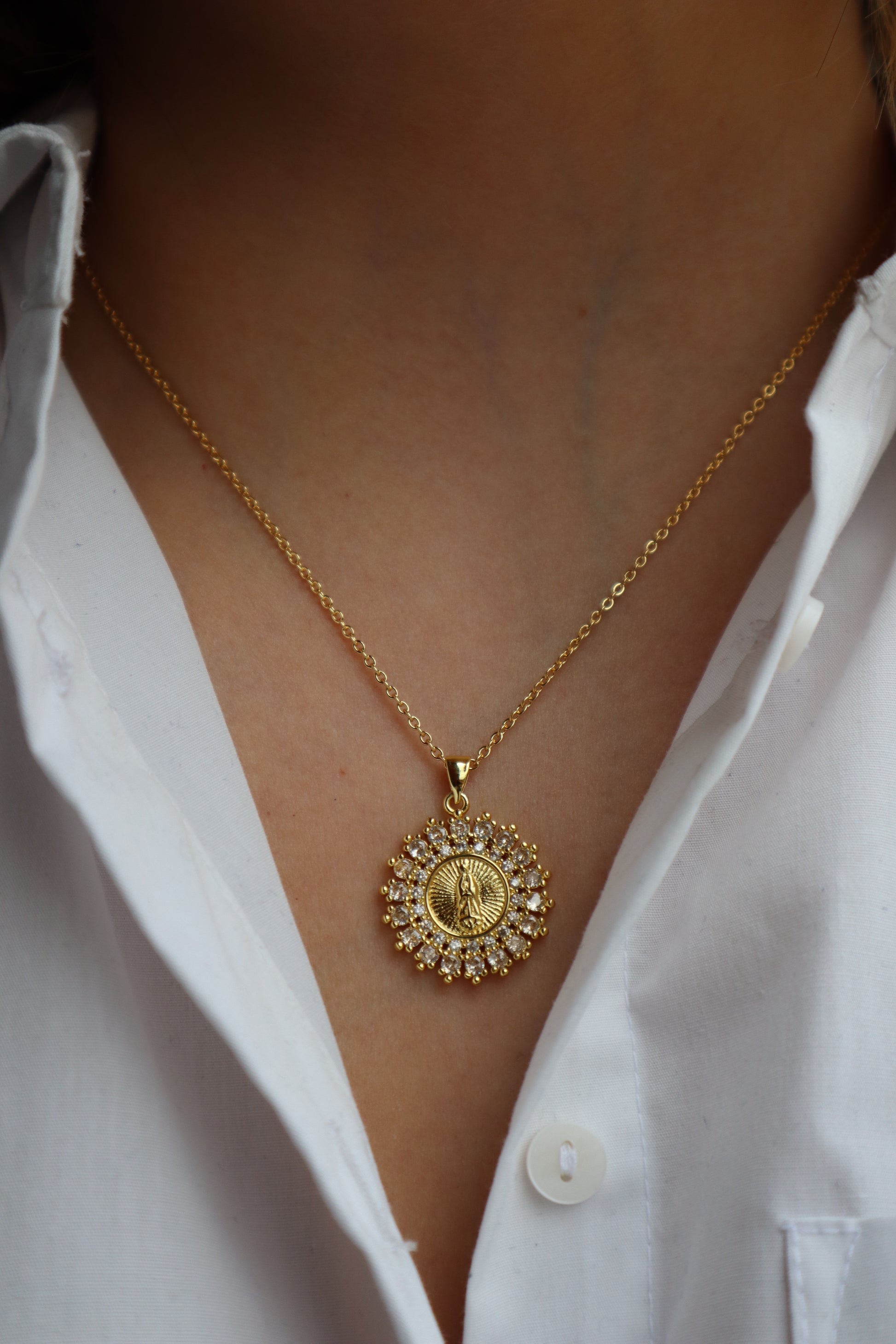 Tamanho do fio é ~44cm de comprimento + 5cm extensível. O pendente mede ~2cm de diâmetro.