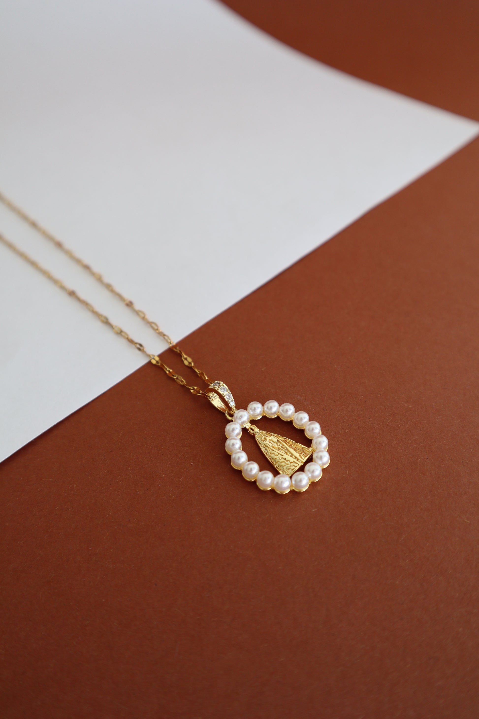 Colar de aço inoxidável com banho de ouro de 18K com madrepérolas.