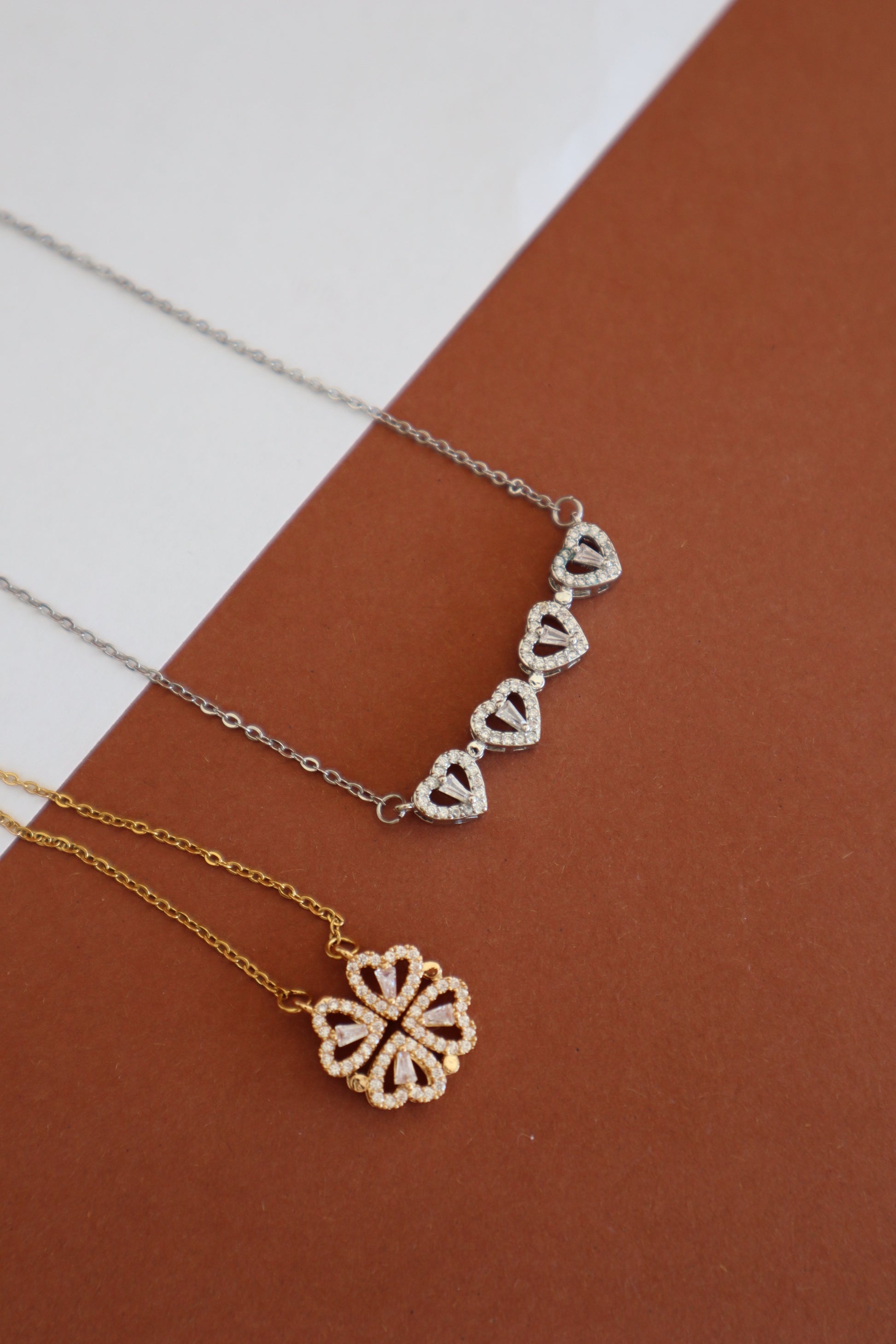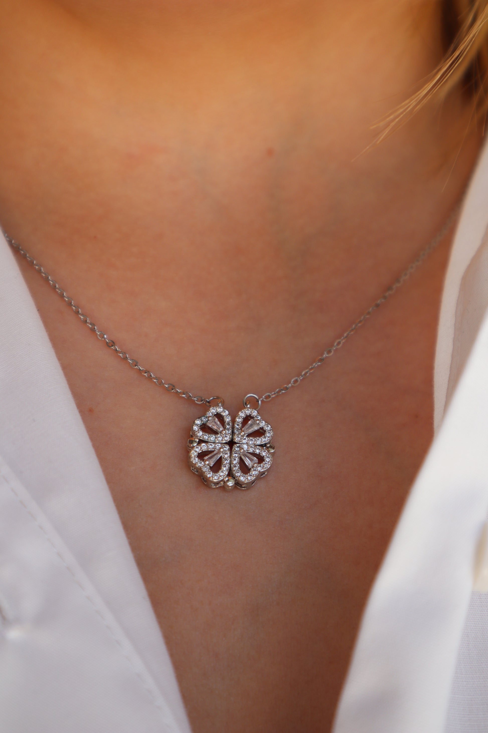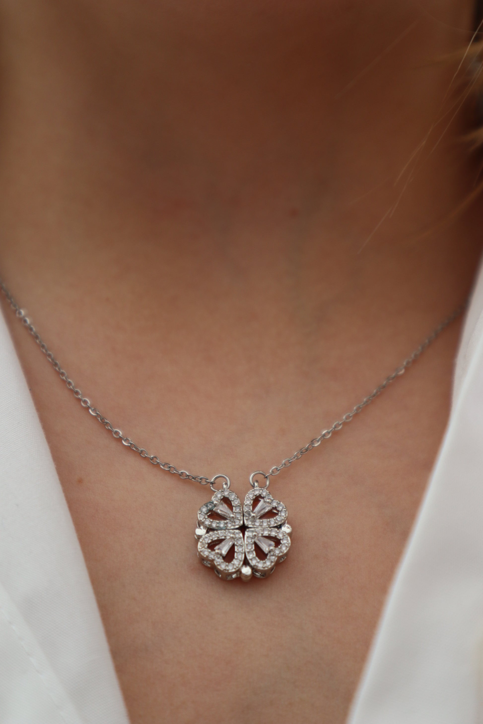 Colar 2 em 1 de aço inoxidável com madrepérola e zircónias.
